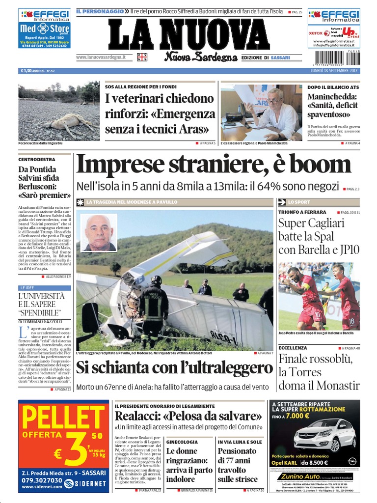 La Nuova Sardegna - Wikipedia from upload.wikimedia.org Data gara — data pubblicazione 21/05/2021. Il mio pensiero e la mia particolare vicinanza va agli. Il dipartimento della protezione civile, che oggi ha diramato un nuovo preallarme, attiva il modulo internazionale di cooperazione. The latest tweets from la nuova sardegna (@lanuovasardegna). Trova 2.729 offerte disponibili, provenienti da 25 siti partner. Questo articolo è disponibile anche in: Tra di loro, questo coraggioso cane pastore. Scopri sul sito ufficiale di sardegna turismo il territorio, la cultura, gli eventi e organizza le tue vacanze in sardegna.